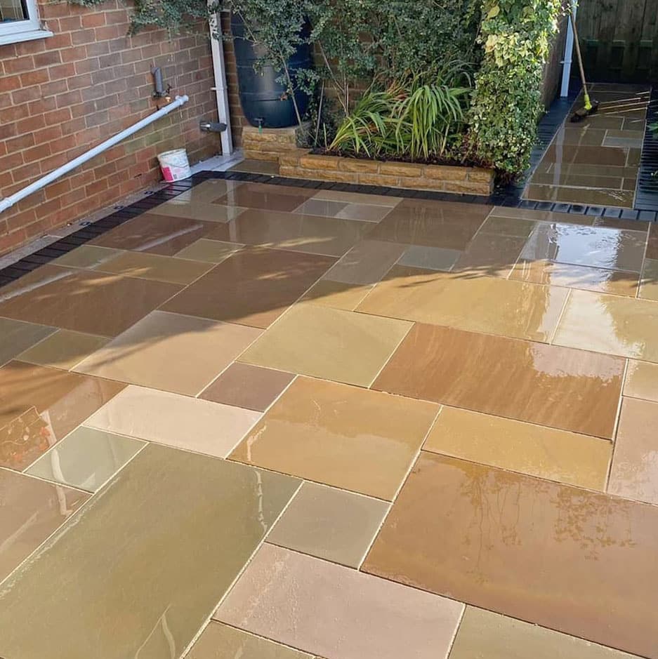The stone undergoes a sawn and honed process, where it is cut into specific sizes and polished to achieve a smooth and refined appearance. Raj Green is a particular type of Indian sandstone that boasts a deep, rich green color. It is a highly durable and long-lasting material that can withstand weathering and fading, making it a popular choice for outdoor paving projects. Sawn and honed Indian sandstone is a versatile material that can be utilized in various applications, including patios, driveways, walkways, and garden paths. The mixed size option of this paving product provides a range of sizes, adding to its versatility and enabling it to fit into any design. Additionally, Raj Green Sawn and Honed Mixed Size Indian Sandstone Paving is effortless to maintain, and can be cleaned using a simple hose down or pressure wash.Quality